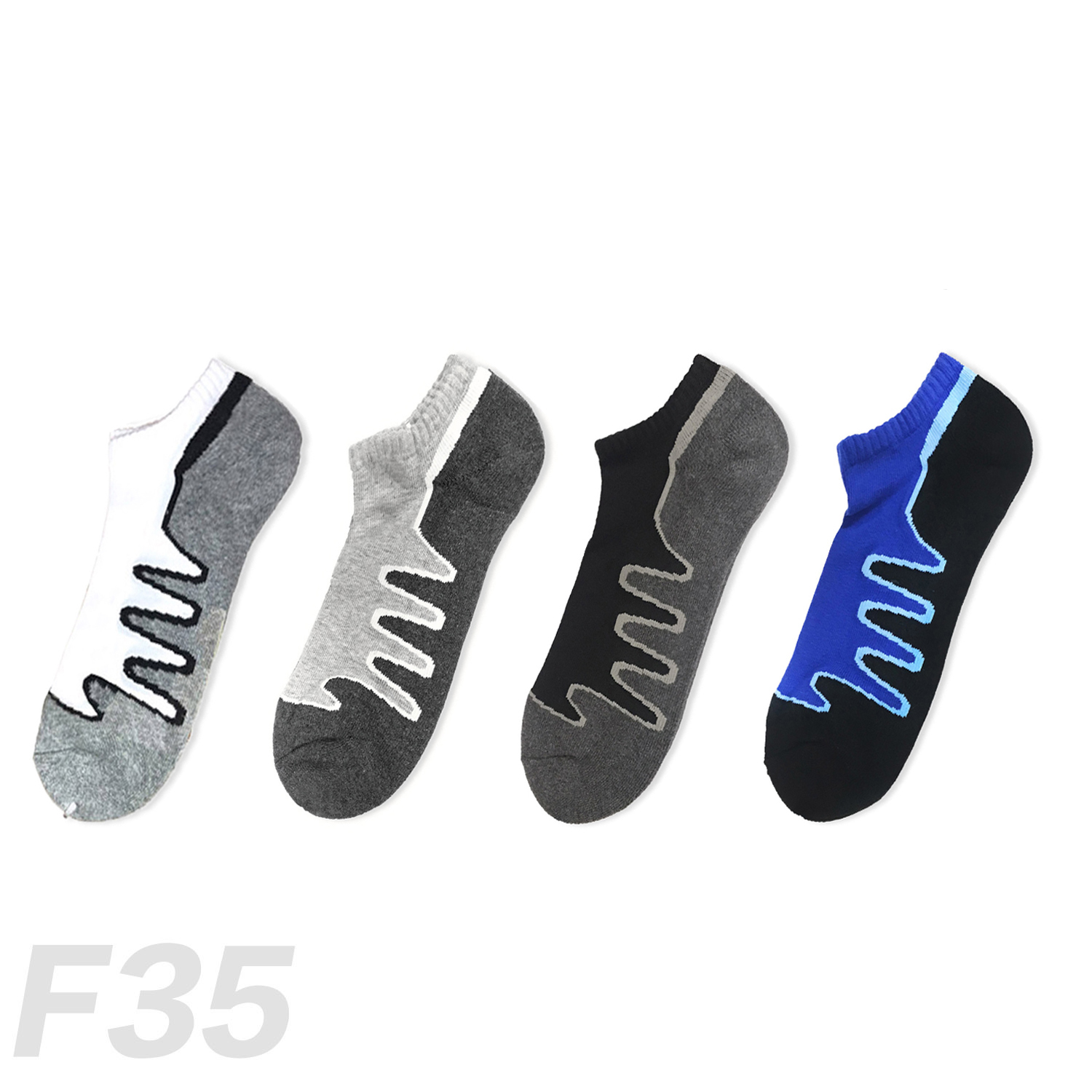 波浪紋運動厚底船短襪 F35